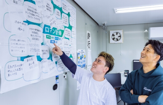 「ロマン計画」と題して、全社員が自分の夢を見える化しています。独立支援や実業団(テニス)でのスポーツ大会出場支援等、社をあげて社員の夢の実現に向けて、サポートをする環境があります。